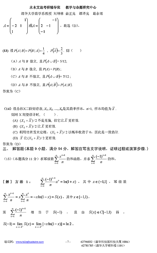 2007年半岛在线注册数学一模拟测试卷及答案解析(一)7