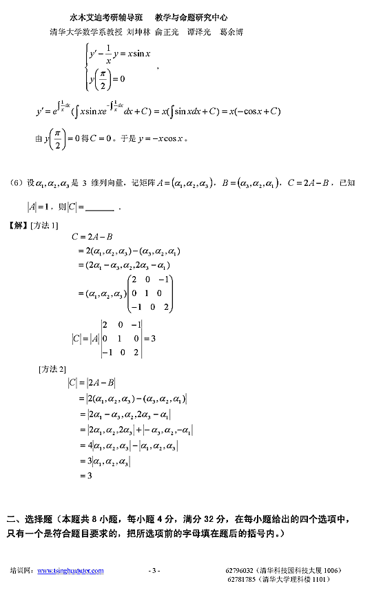 2007年半岛在线注册数学二模拟测试卷及答案解析(一)3