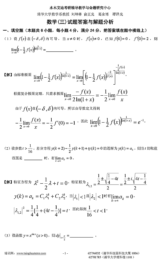 2007年半岛在线注册数学三模拟测试卷及答案解析(一)1