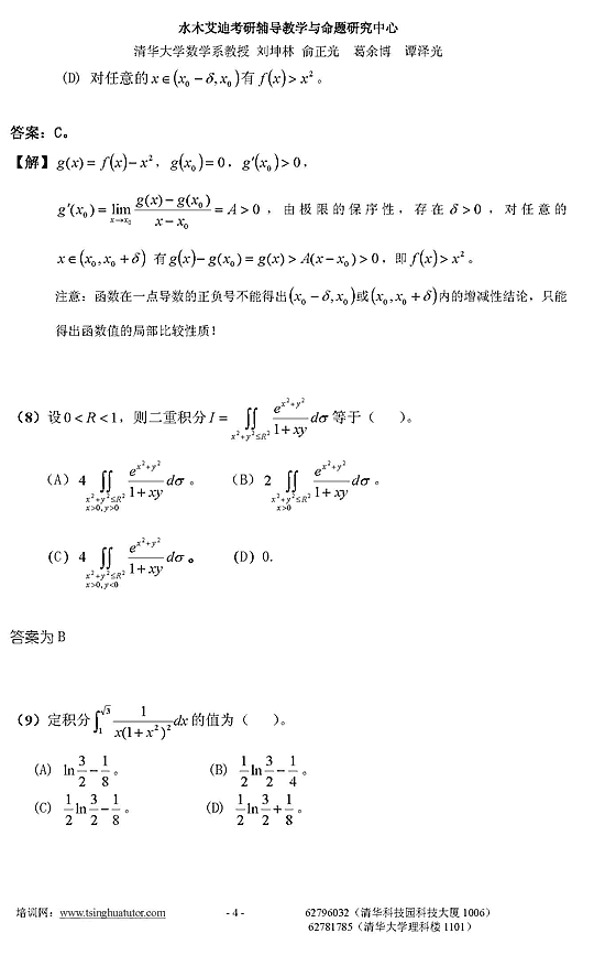 2007年半岛在线注册数学四模拟测试卷及答案解析(一)4