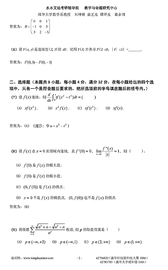 2007年半岛在线注册数学一模拟测试卷及答案解析(二)2
