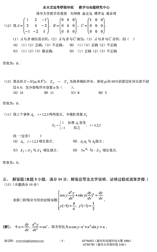 07年半岛在线注册数学一模拟测试卷及答案解析(三)5