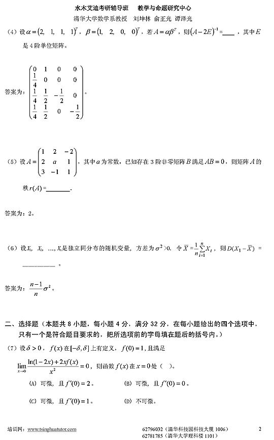 07年半岛在线注册数学四模拟测试卷及答案解析(三)2