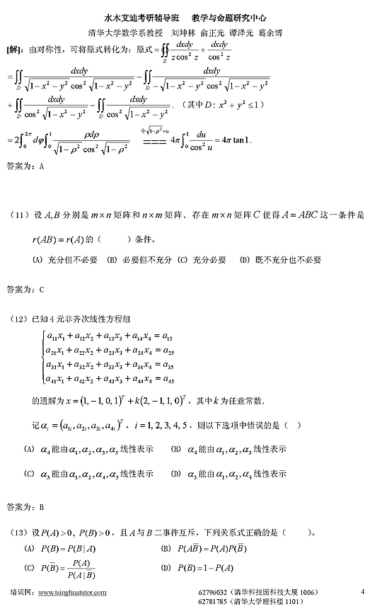 07年半岛在线注册数学一模拟测试卷及答案解析(四)4