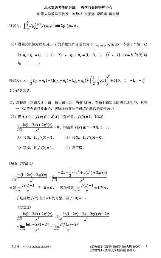 07年半岛在线注册数学二模拟测试卷及答案解析(四)2