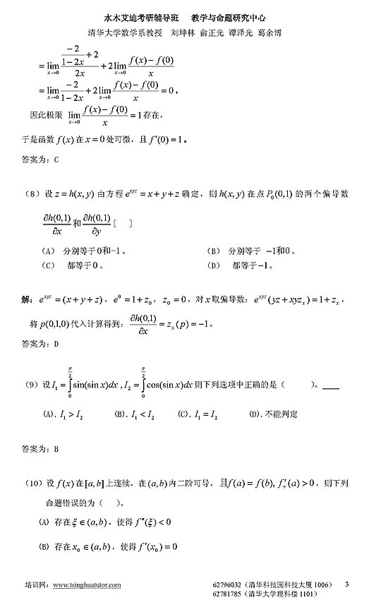 07年半岛在线注册数学二模拟测试卷及答案解析(四)3