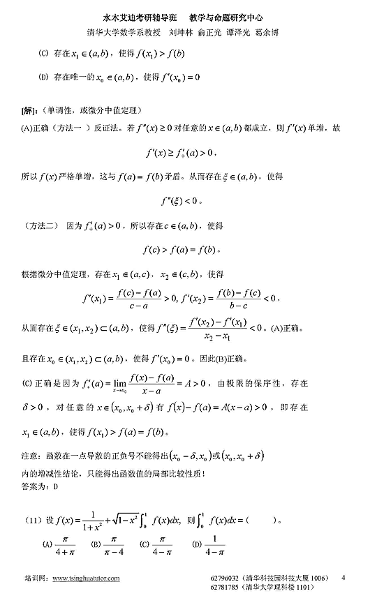 07年半岛在线注册数学二模拟测试卷及答案解析(四)4