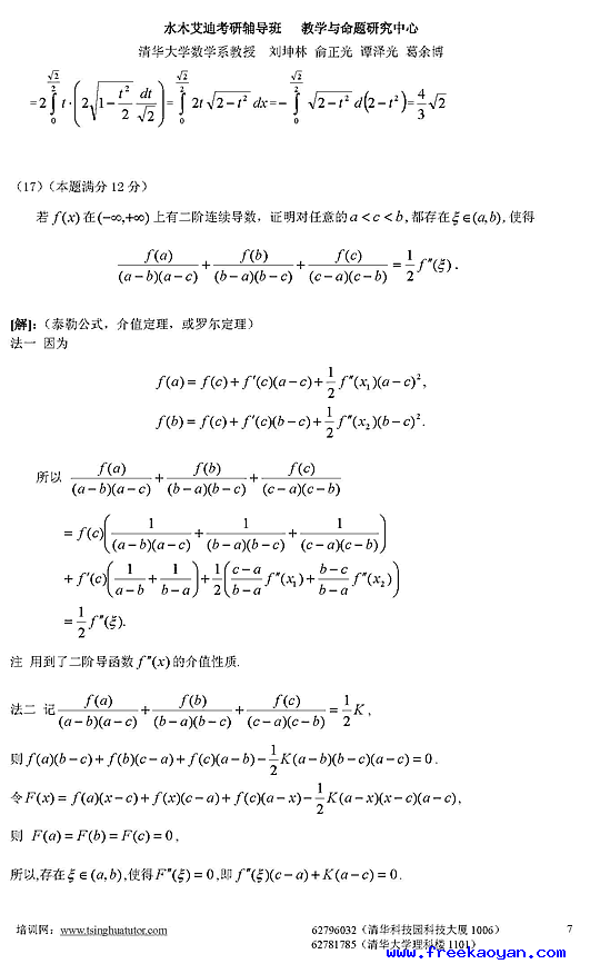 07年半岛在线注册数学三模拟测试卷及答案解析(四)7