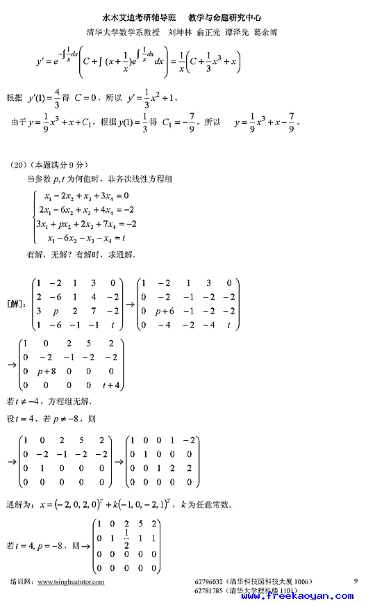 07年半岛在线注册数学三模拟测试卷及答案解析(四)9