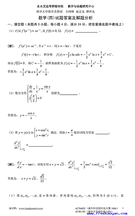 07年半岛在线注册数学四模拟测试卷及答案解析(四)1