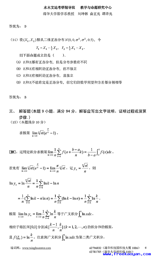 07年半岛在线注册数学四模拟测试卷及答案解析(四)6