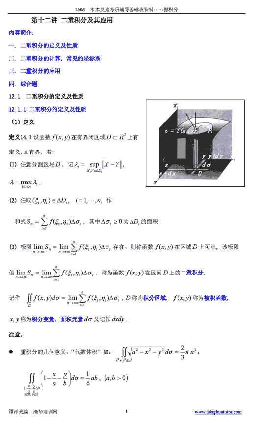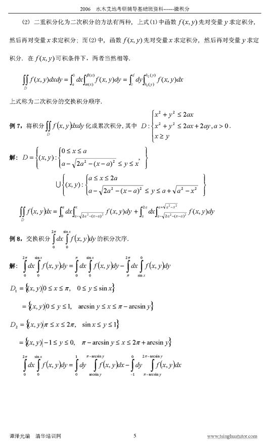 2006年水木艾迪半岛在线注册基础辅导班二重积分讲义