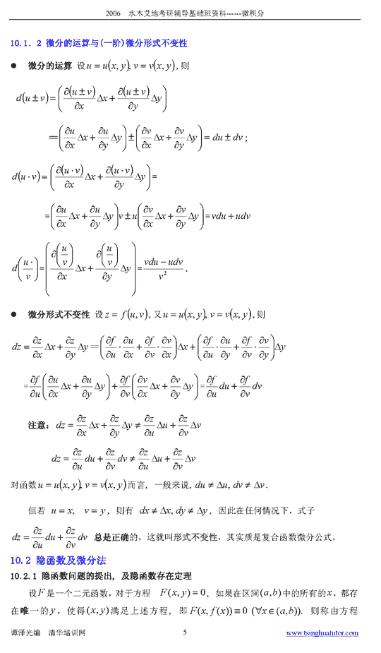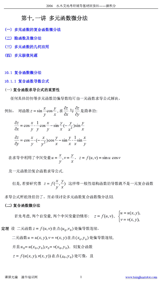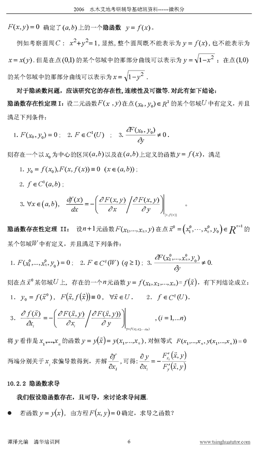 2006年水木艾迪半岛在线注册基础辅导多元微分讲义二a