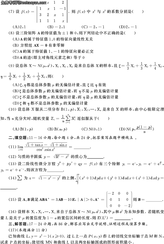 2007半岛在线注册数学考前必做三套题(数学一试卷二)