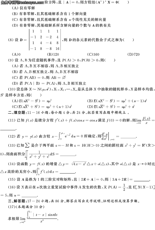 2007半岛在线注册数学考前必做三套题(数学一试卷一)