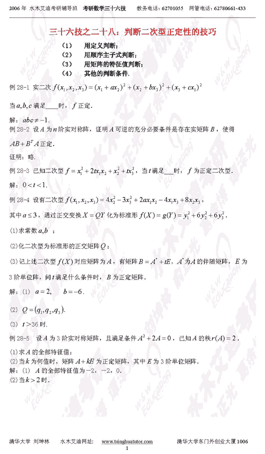 半岛在线注册数学:判断二次型正定性的技巧