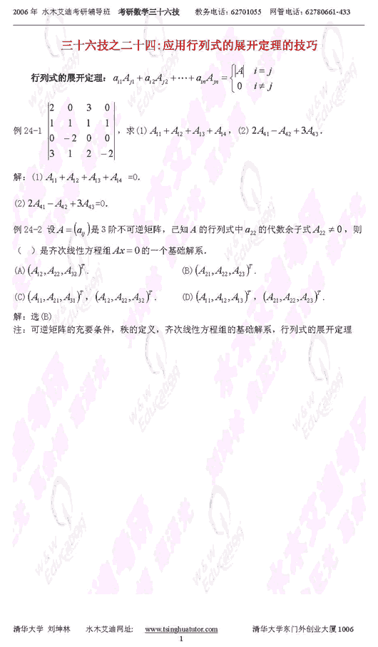 半岛在线注册数学:应用行列式的展开定理的技巧