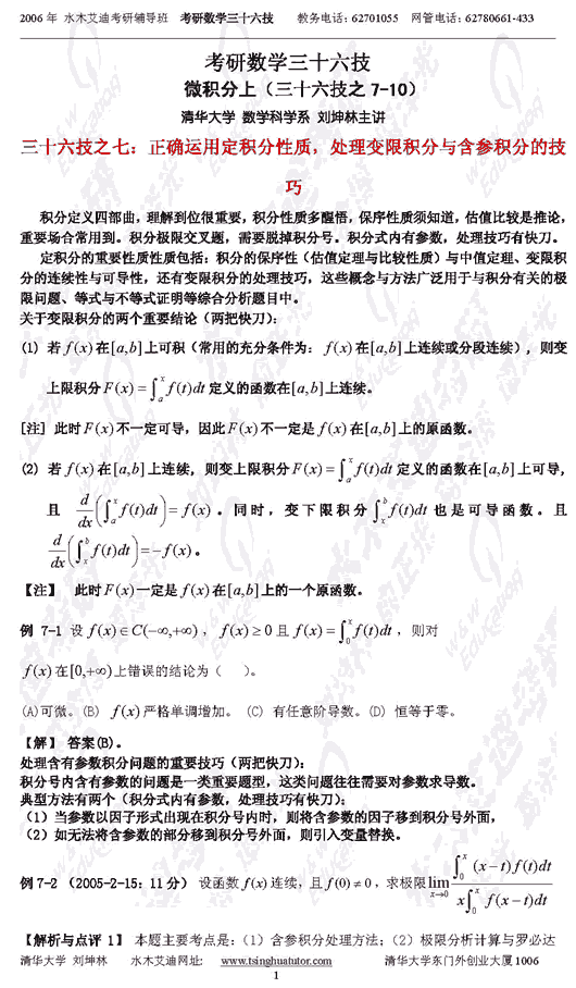 半岛在线注册数学:处理变限积分与含参积分的技巧
