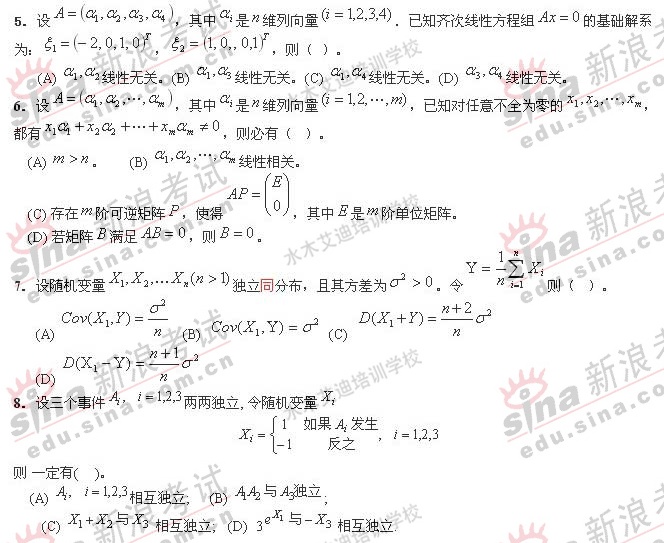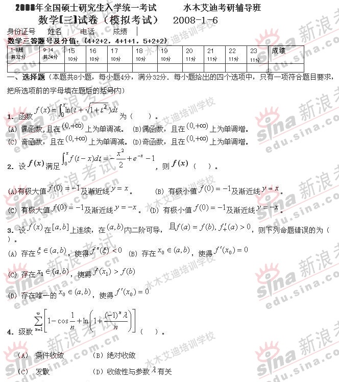 水木艾迪08半岛在线注册数学(三)押题试卷及参考答案
