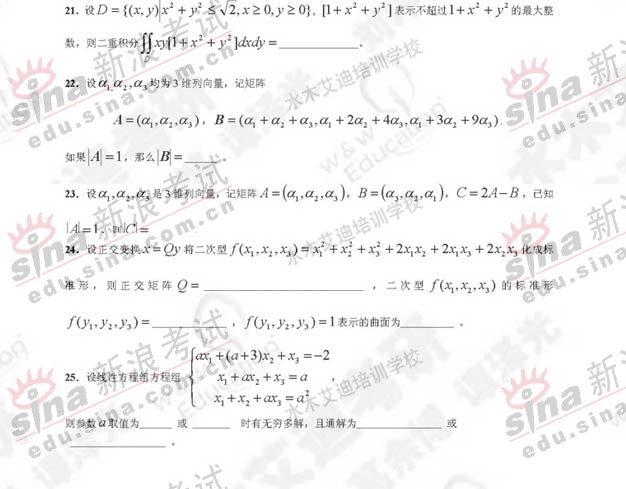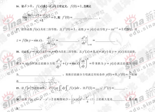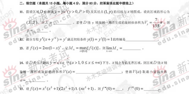 2009年半岛在线注册数学水平自测试题数学(二)及参考答案