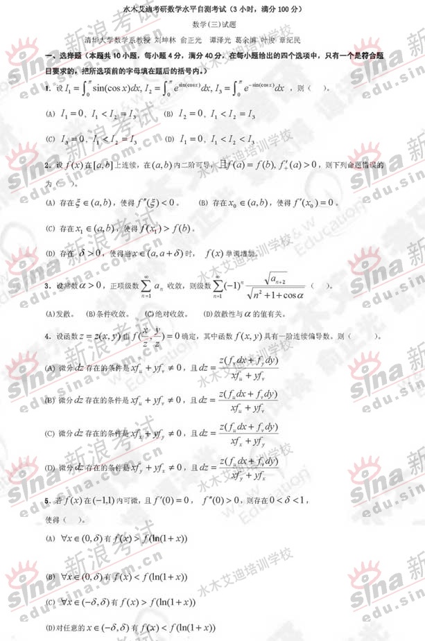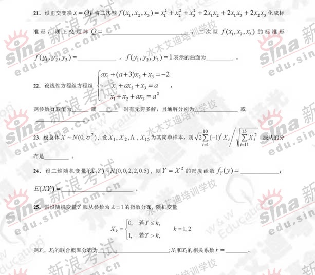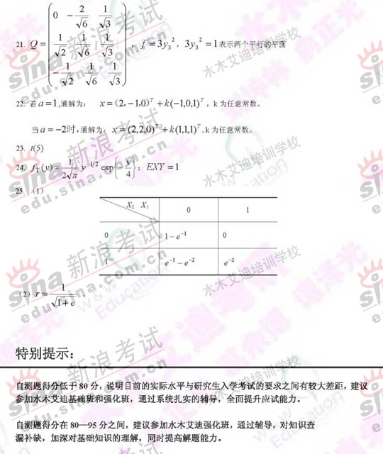 2009年半岛在线注册数学水平自测试题数学(三)及参考答案