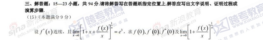 跨考教育2014年半岛在线注册《数学一》模拟试题及参考答案(三)