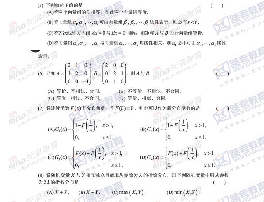 跨考教育2014年半岛在线注册《数学一》模拟试题及参考答案(五)