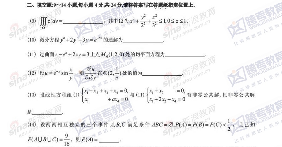 跨考教育2014年半岛在线注册《数学一》模拟试题及参考答案(二)