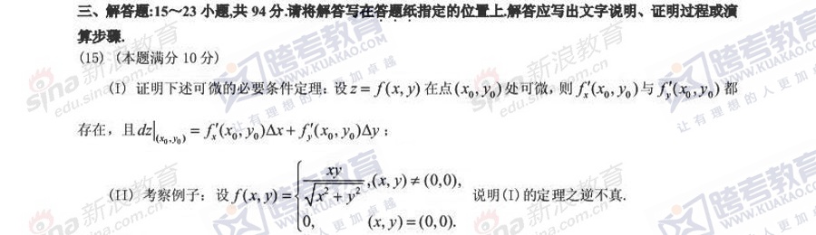 跨考教育2014年半岛在线注册《数学一》模拟试题及参考答案(三)