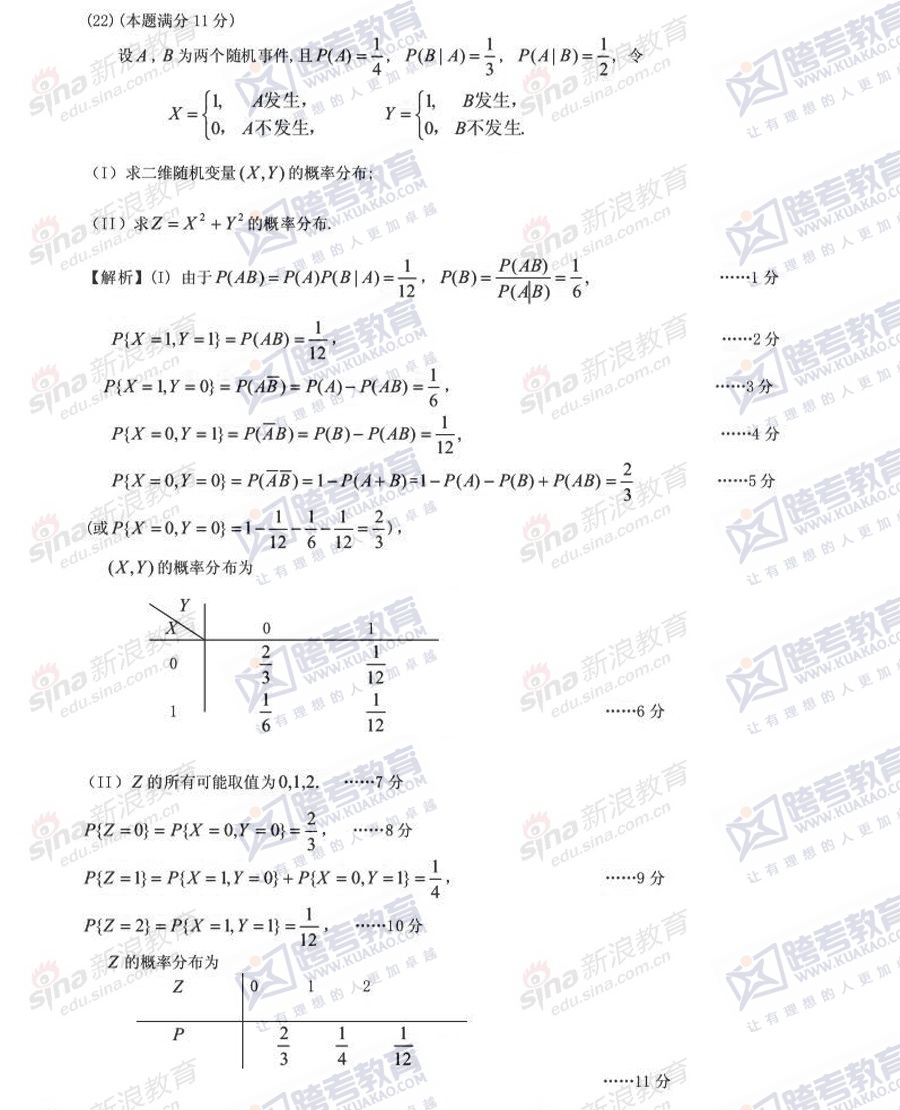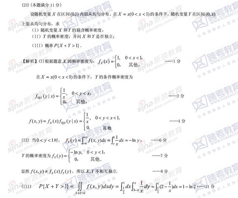 2011半岛在线注册数学一真题及参考答案【高清完美打印版】