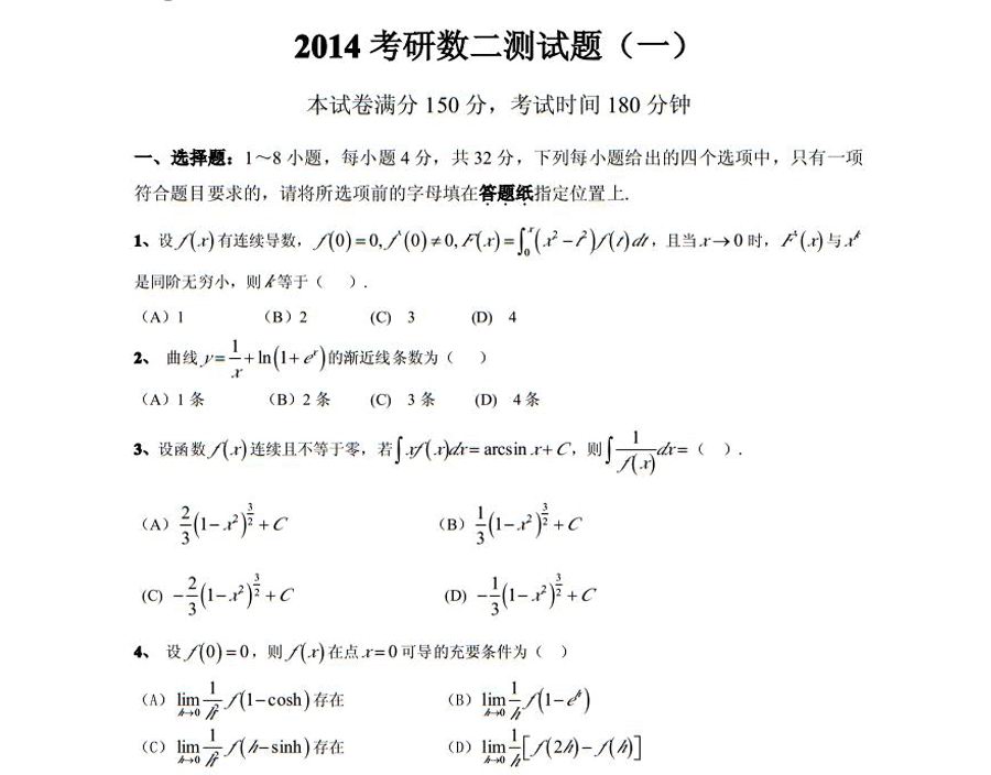 距离2014年研究生考试还有最后几天。新浪小编整理了2014年半岛在线注册[微博]冲刺阶段《数学一》模拟题,希望对备考的你有所帮助。 ...