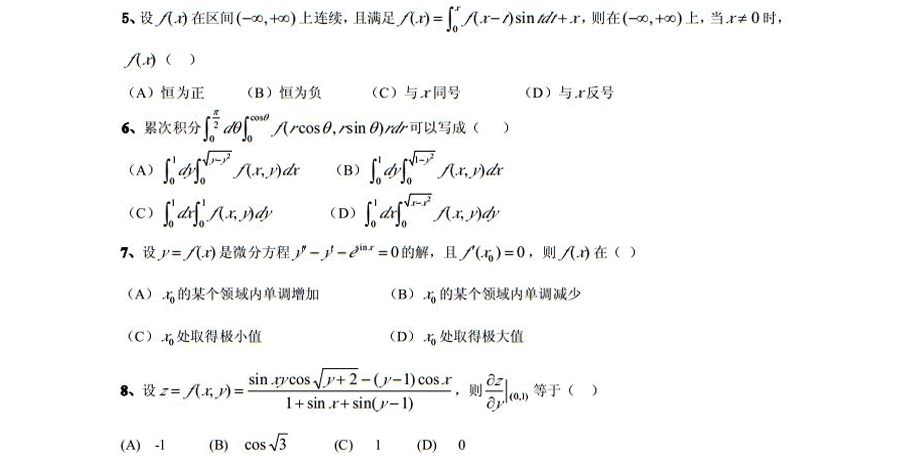 跨考教育2014年半岛在线注册《数学一》模拟试题及参考答案(五)