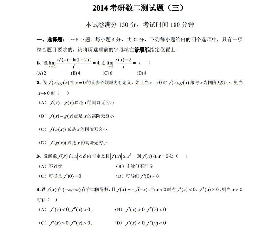 距离2014年研究生考试还有最后几天。新浪小编整理了2014年半岛在线注册[微博]冲刺阶段《数学一》模拟题,希望对备考的你有所帮助。 ...