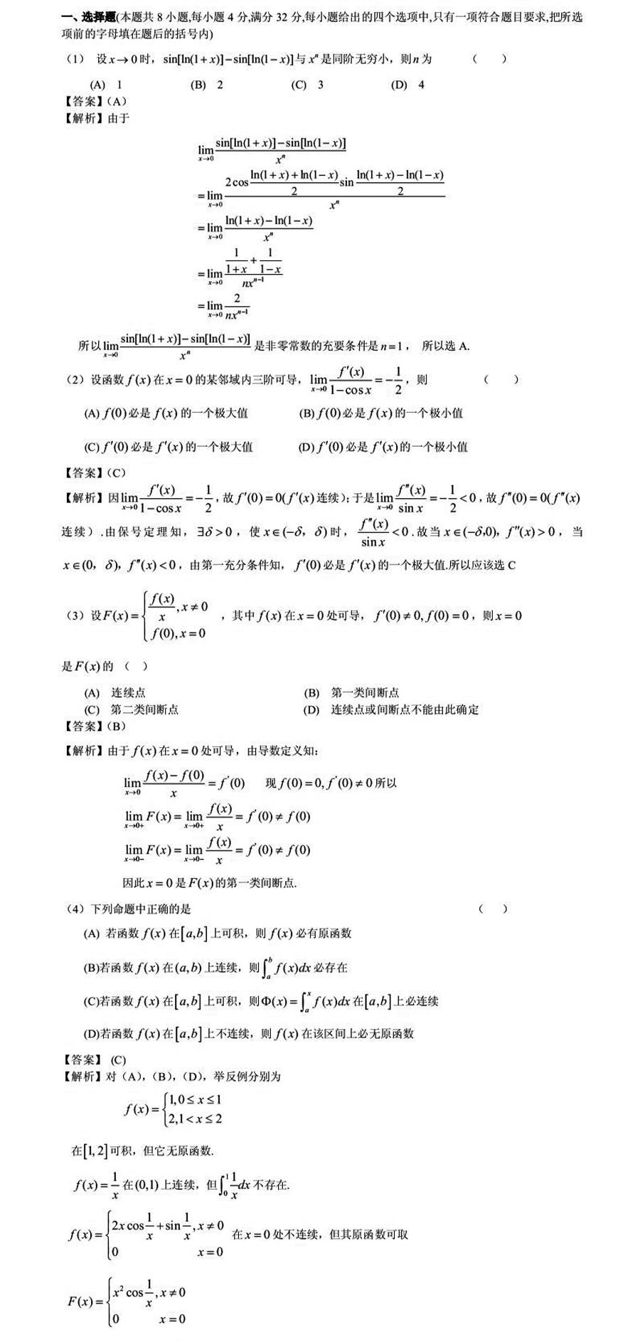 跨考教育2014年半岛在线注册《数学二》模拟试题及参考答案(八)