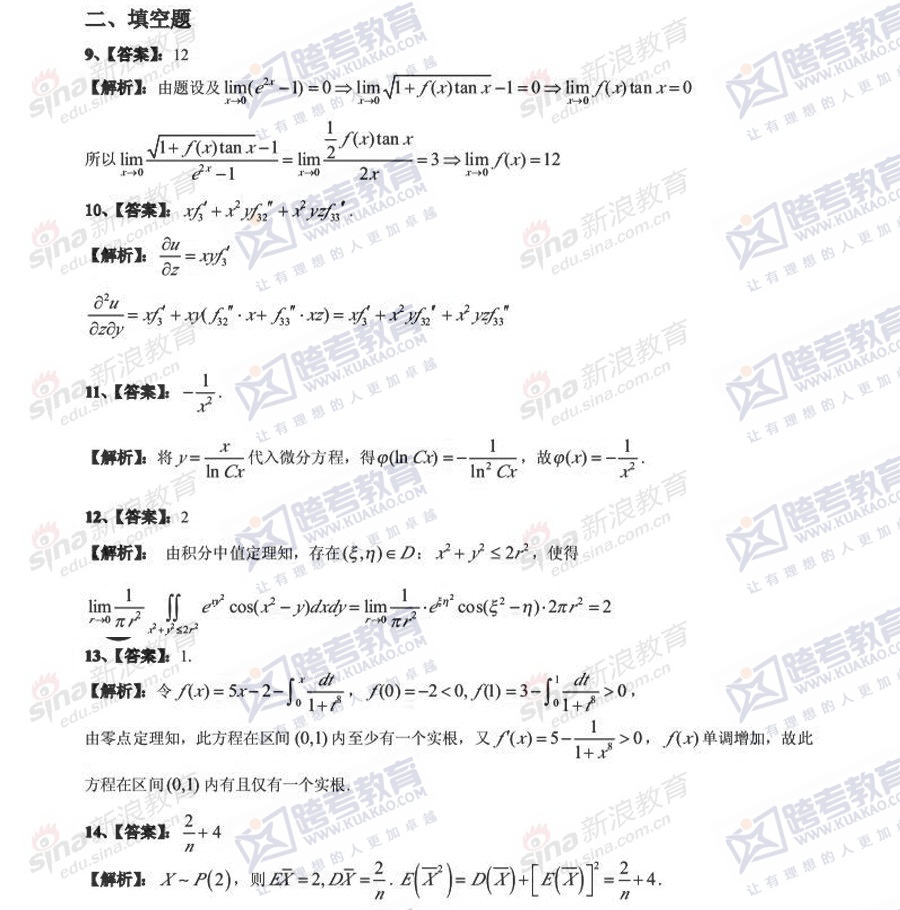 跨考教育2014年半岛在线注册《数学二》模拟试题及参考答案(九)