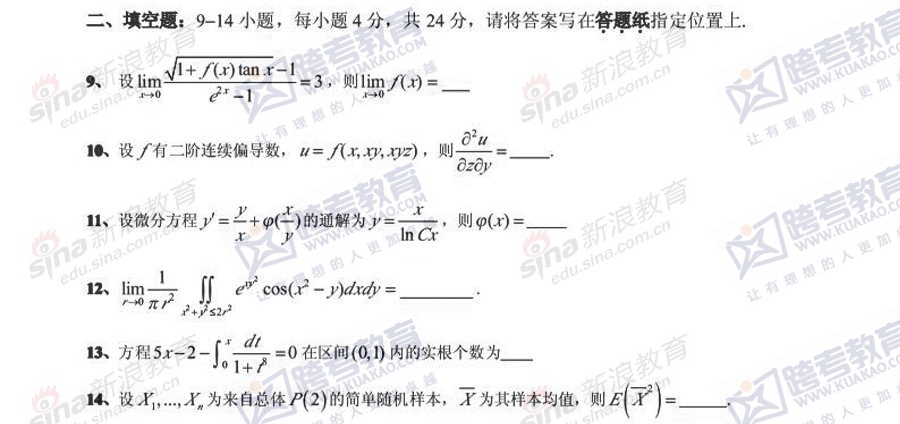 跨考教育2014年半岛在线注册《数学三》模拟试题及参考答案(二)