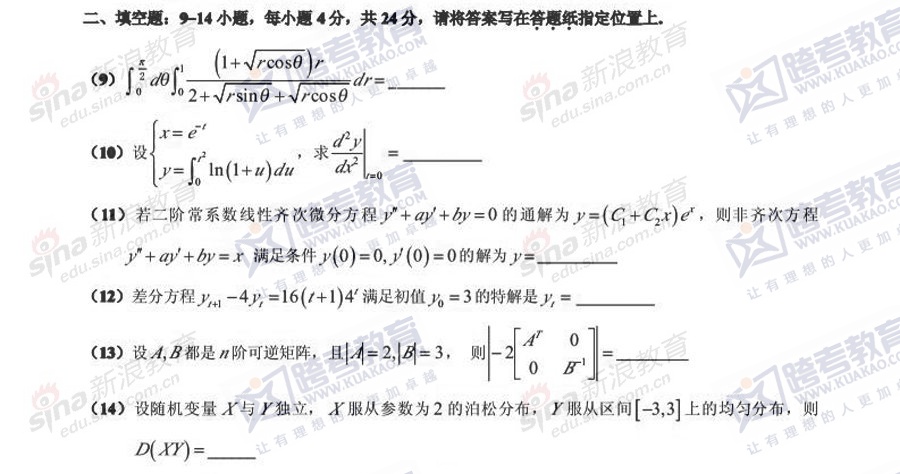 跨考教育2014年半岛在线注册《数学三》模拟试题及参考答案(二)