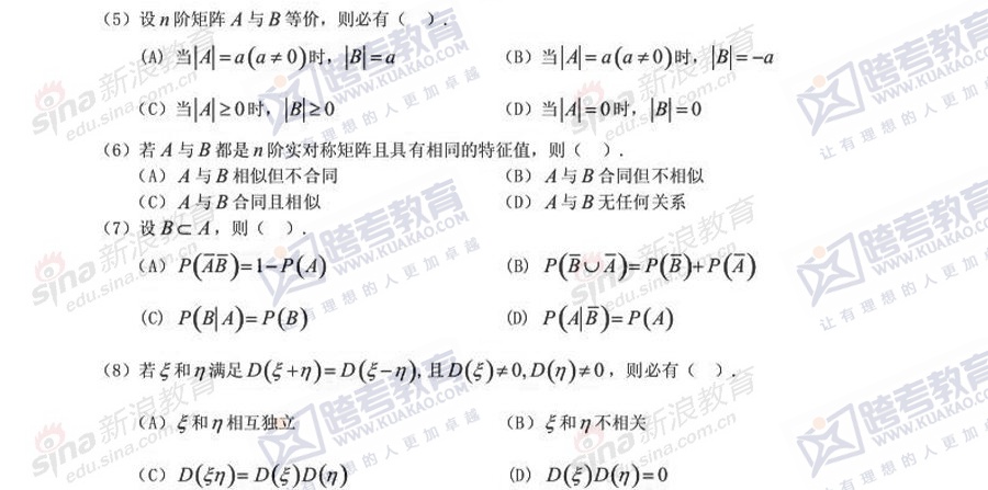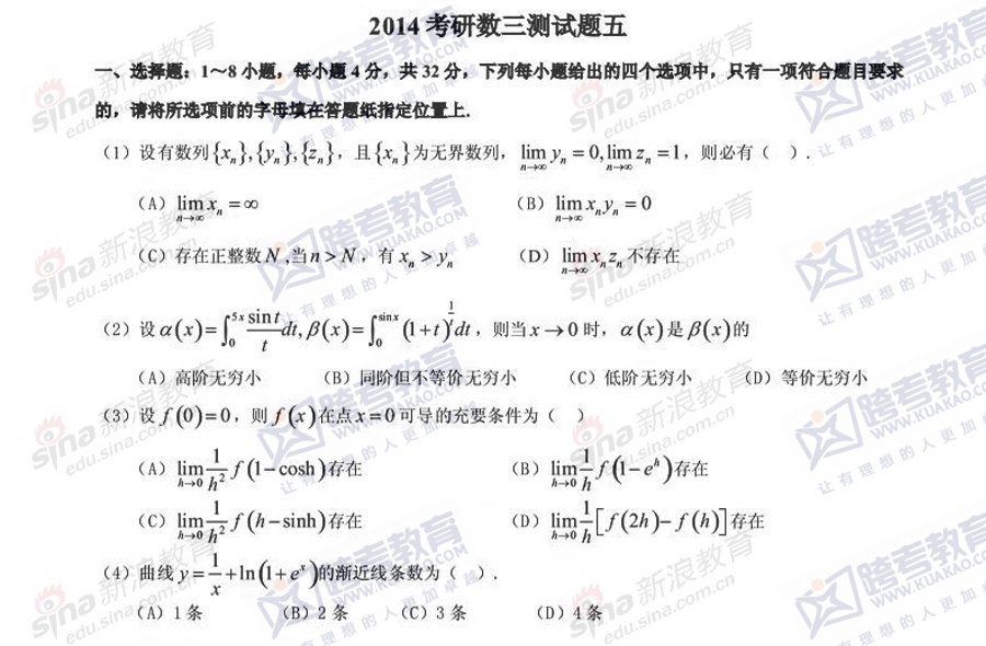 跨考教育2014年半岛在线注册《数学三》模拟试题及参考答案(五)
