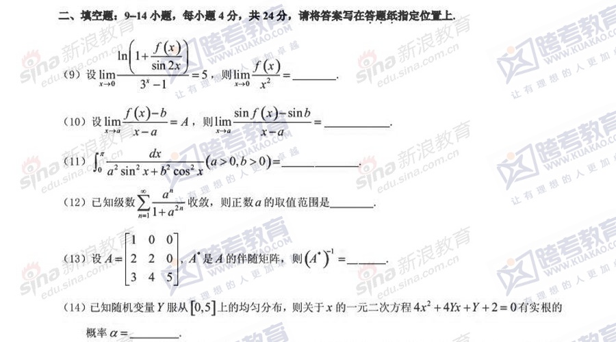 距离2014年研究生考试还有最后几天。新浪小编整理了2014年半岛在线注册[微博]冲刺阶段《数学二》模拟题,希望对备考的你有所帮助。 ...