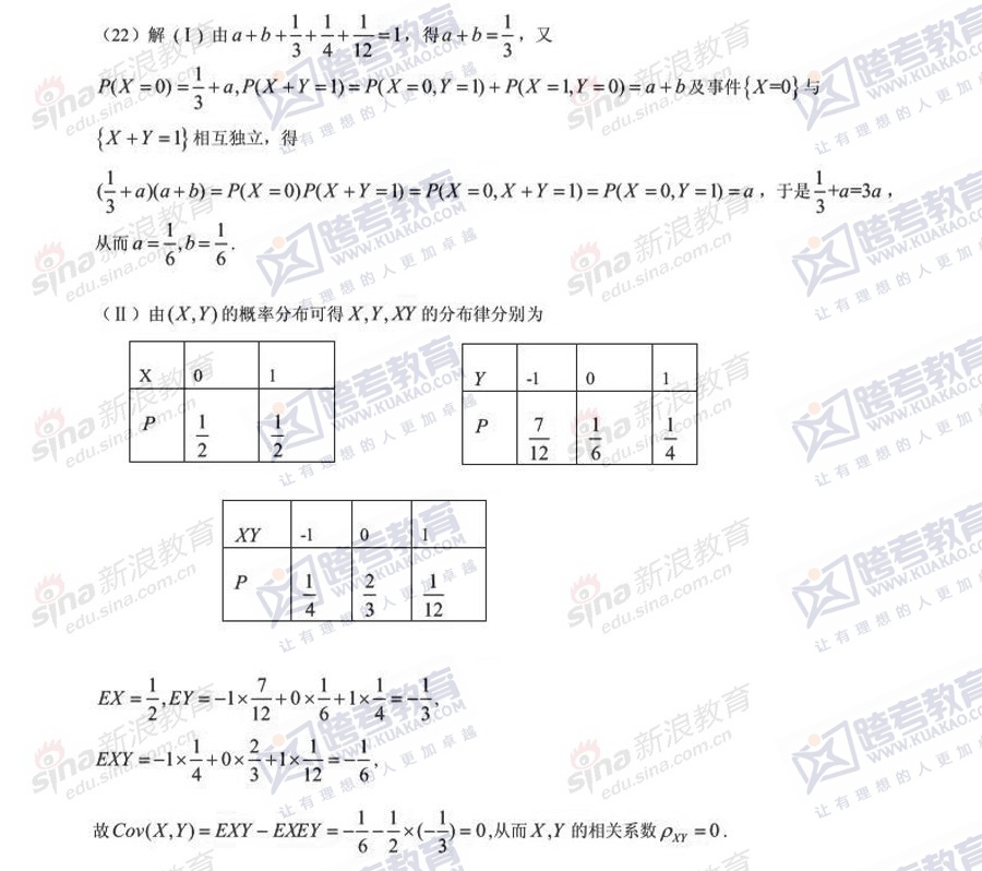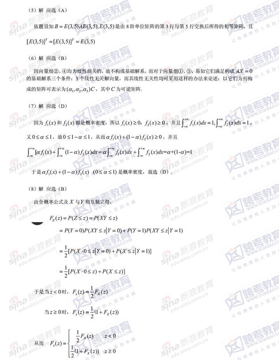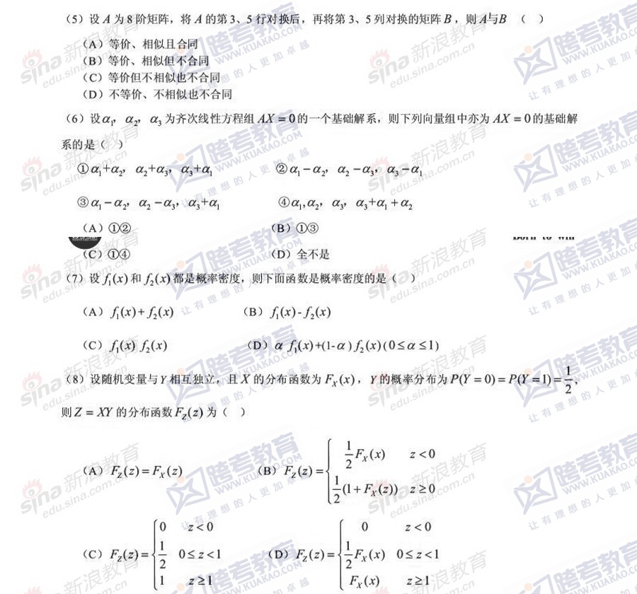 跨考教育2014年半岛在线注册《数学三》模拟试题及参考答案(五)