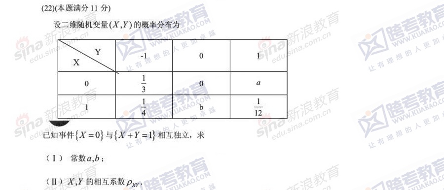 跨考教育2014年半岛在线注册《数学三》模拟试题及参考答案(二)