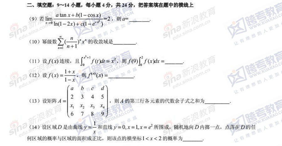 跨考教育2014年半岛在线注册《数学二》模拟试题及参考答案(九)