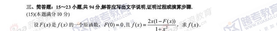 跨考教育2014年半岛在线注册《数学三》模拟试题及参考答案(三)