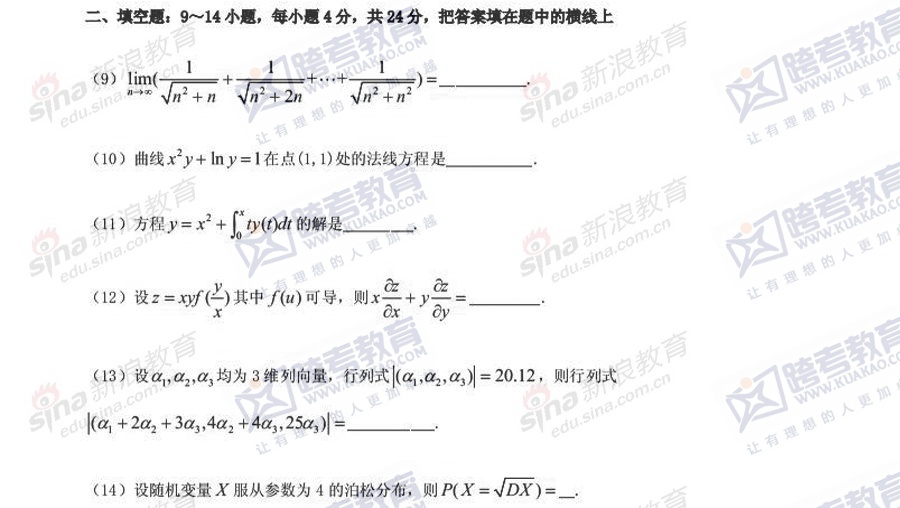 距离2014年研究生考试还有最后几天。新浪小编整理了2014年半岛在线注册[微博]冲刺阶段《数学二》模拟题,希望对备考的你有所帮助。 ...