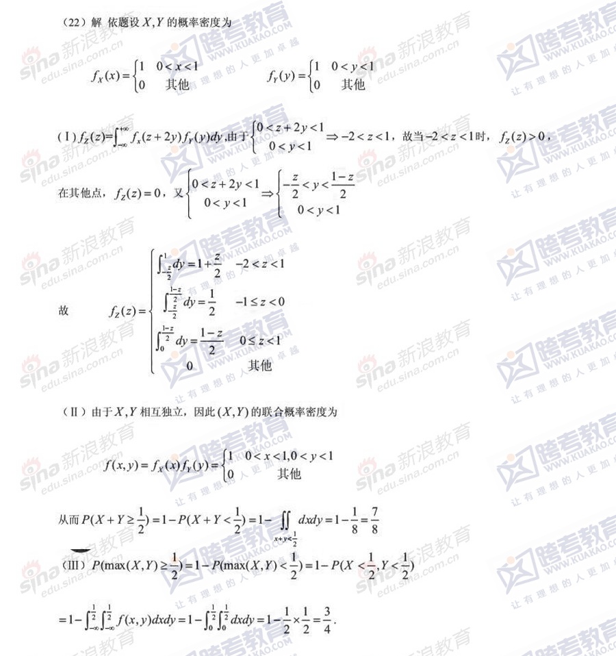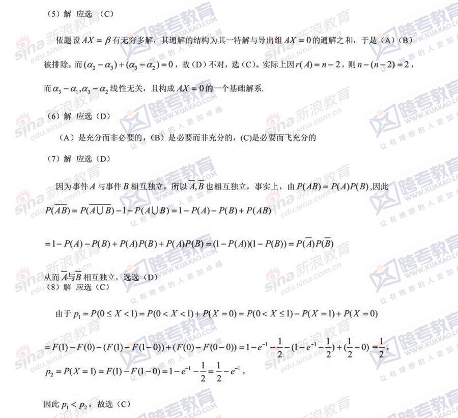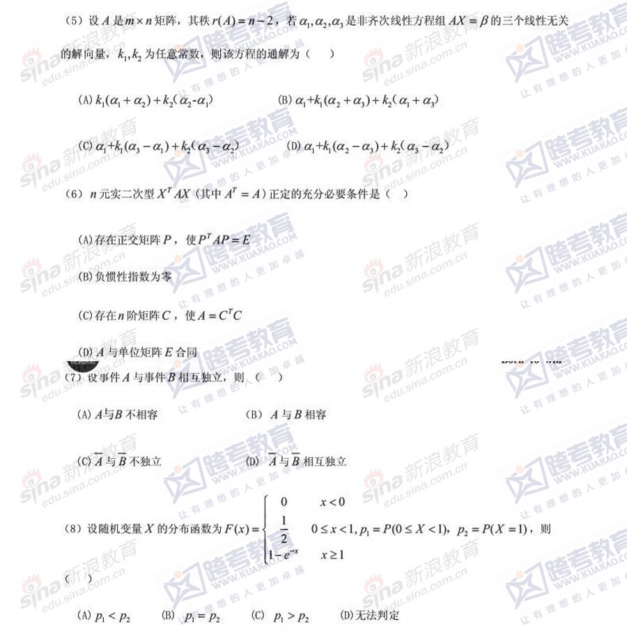 跨考教育2014年半岛在线注册《数学三》模拟试题及参考答案(五)