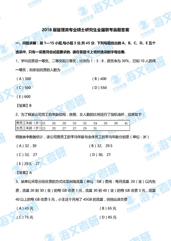 2018届管理类专业硕士研究生全国联考真题及参考答案