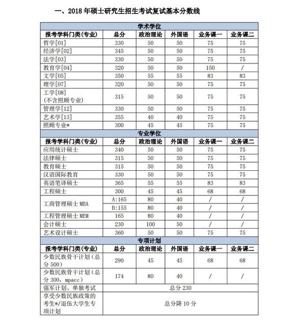 2。实行差额复试,差额比例由各招生单位根据我校复试基本分数线确定,各学科复试分数线不低于学校各门类基本分数线,并上报研招处备案。少数民族骨干计划、强军计划、单独考试计划、“退役大学生士兵专项计划”的考生达到学校基本复试分数线即可参加复试。
