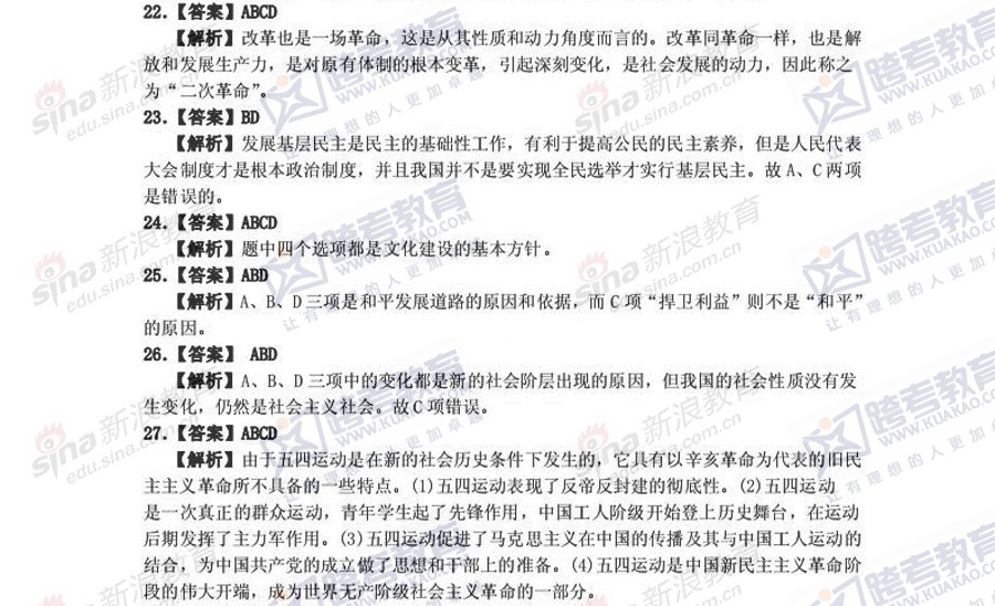 跨考教育2014年半岛在线注册《政治》冲刺模拟试题及参考答案(五)