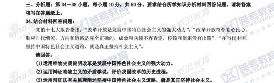 跨考教育2014年半岛在线注册《政治》冲刺模拟试题及参考答案(三)