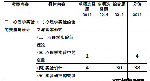 我们从这个天平的两端可以看出,2014年考察的侧重点,当然实验设计和变量仍然是重中之重,但是也不能忽视主要的心理学实验,反应时以及实验心理学概述等基础知识。